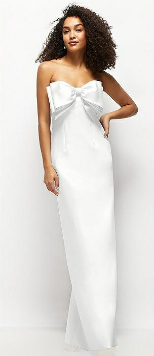 Strapless Satin Column Maxi Dress with Oversized Handcrafted Bow in white