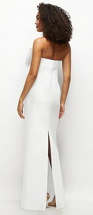 Strapless Draped Bodice Column Dress with Oversized Bow in white