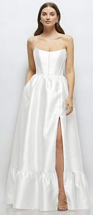 Strapless Cat-Eye Boned Bodice Maxi Dress with Ruffle Hem in white