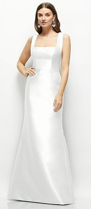 Open Neckline Cutout Satin Twill A-Line Gown with Pockets in white