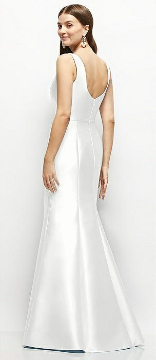 V-Neck Halter Satin Trumpet Gown in white
