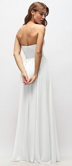 Strapless Pleated Surplice Chiffon Maxi Dress with A-Line Skirt in white