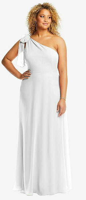 Chiffon One-Shoulder Maxi Dress with Circle Skirt in white