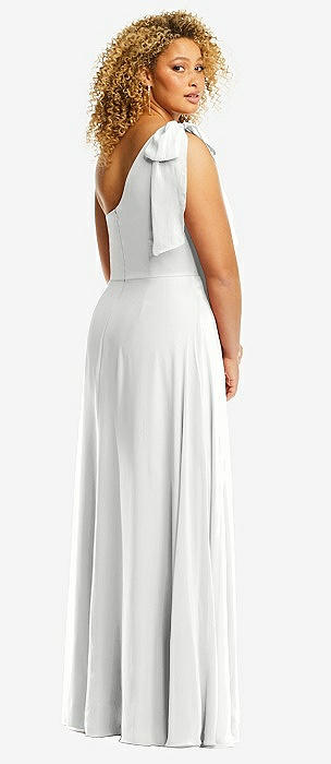 Draped One-Shoulder Maxi Dress with Scarf Bow in white