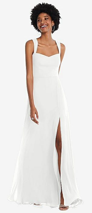 Bow Shoulder Square Neck Chiffon Maxi Dress in white