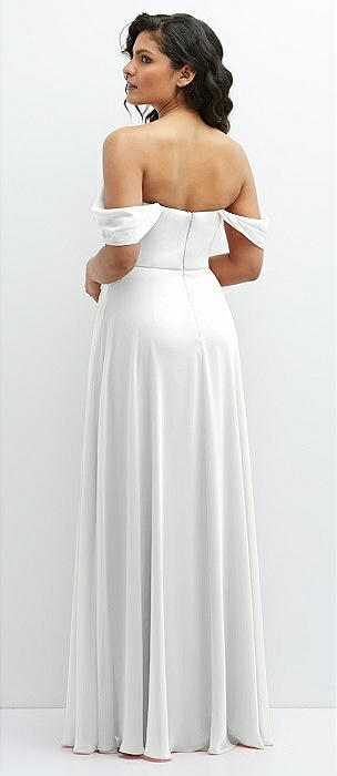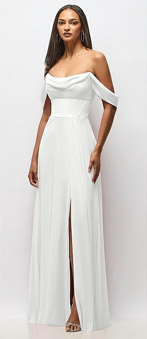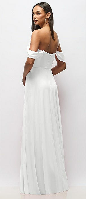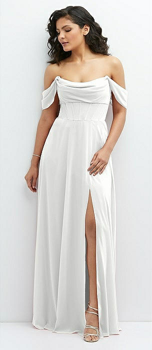 Chiffon Corset Maxi Dress with Removable Off-the-Shoulder Swags in white