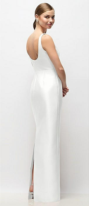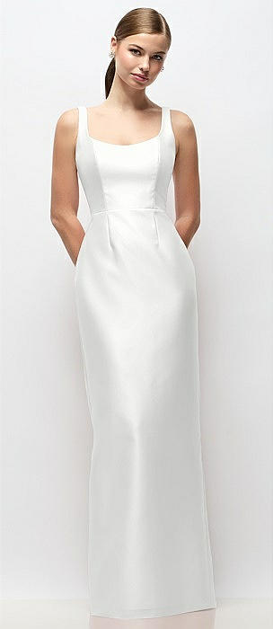 Scoop Neck Satin Column Maxi Dress in white