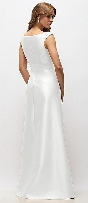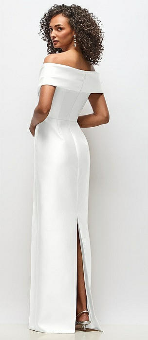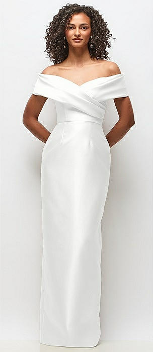 Off-the-Shoulder Draped Wrap Satin Maxi Dress in white