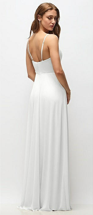 Wrap Bodice Chiffon Maxi Dress with Adjustable Spaghetti Straps in white