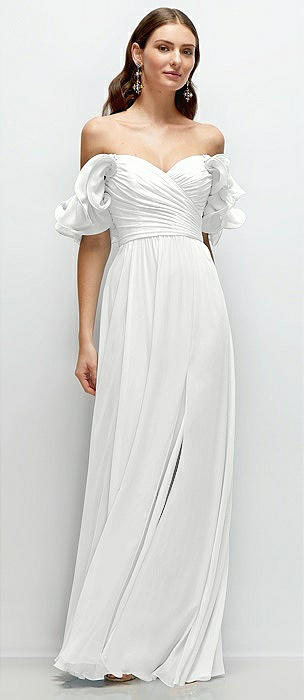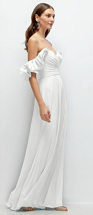 Off-the-Shoulder Basque Neck Maxi Dress with Flounce Sleeves in white