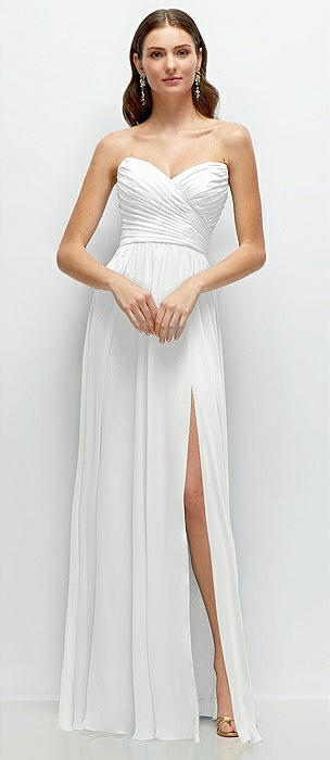 Strapless Pleated Surplice Chiffon Maxi Dress with A-Line Skirt in white