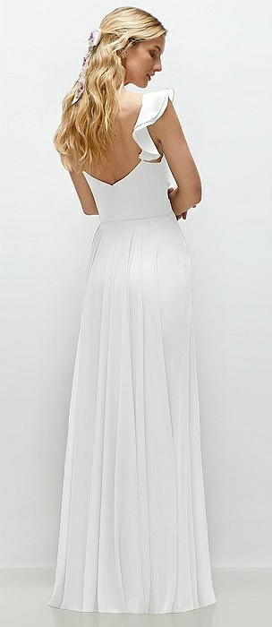 Convertible Ruffle Strap Chiffon Maxi Dress with Full Circle Skirt in white