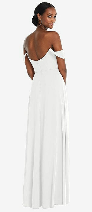 Off-the-Shoulder Basque Neck Maxi Dress with Flounce Sleeves in white