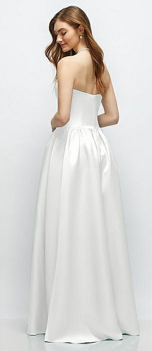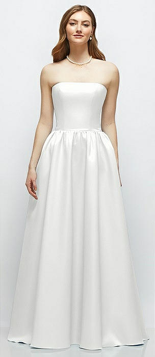 Strapless Satin Drop Waist Gown with Full Skirt in white