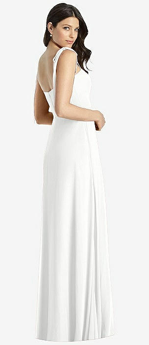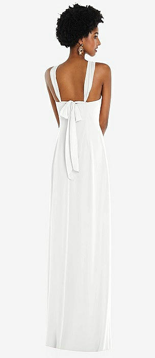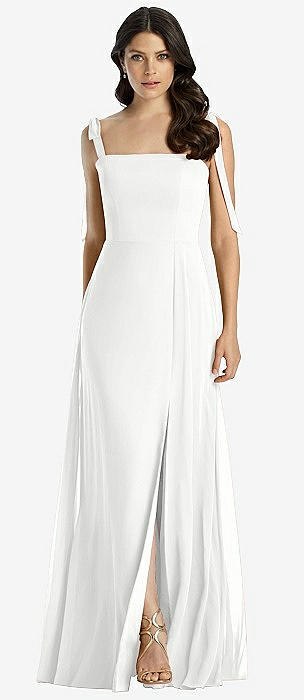 Tie-Shoulder Chiffon Maxi Dress with Front Slit in white