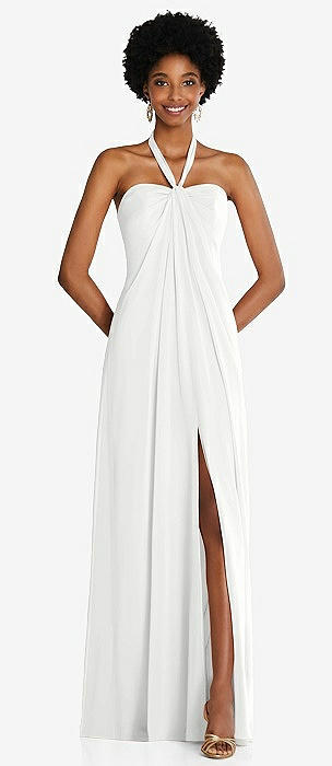 Draped Chiffon Grecian Column Gown with Convertible Straps in white