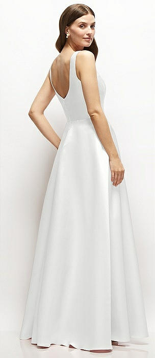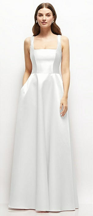 Square-Neck Satin Maxi Dress with Full Skirt in white
