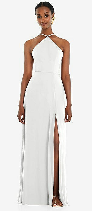 Diamond Halter Maxi Dress with Adjustable Straps in white