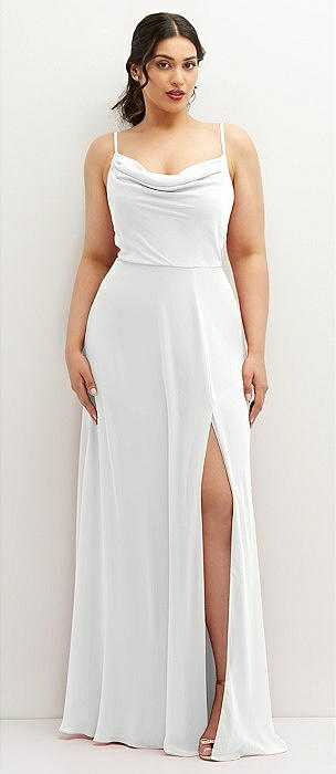 Soft Cowl-Neck A-Line Maxi Dress with Adjustable Straps in white