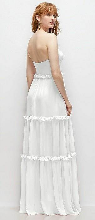 Strapless Chiffon Maxi Dress with Tiered Micro Ruffle Full Skirt in white
