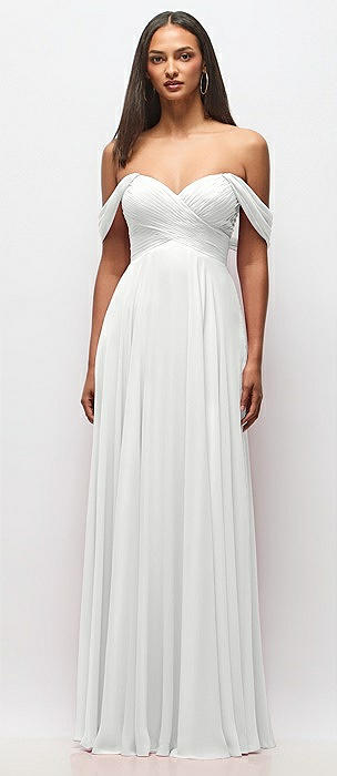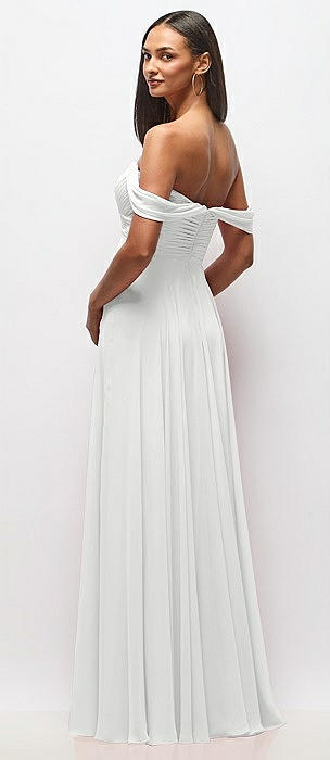 Off-the-Shoulder Draped Chiffon Maxi Dress in white