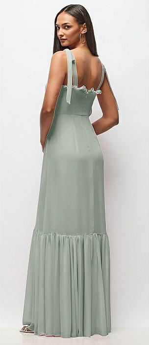Tie-Shoulder Bustier Bodice Ruffle-Hem Maxi Dress in willow green