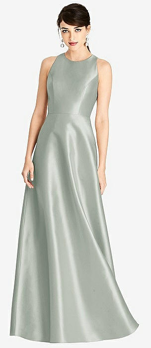 Sleeveless Open-Back Satin A-Line Dress in willow green