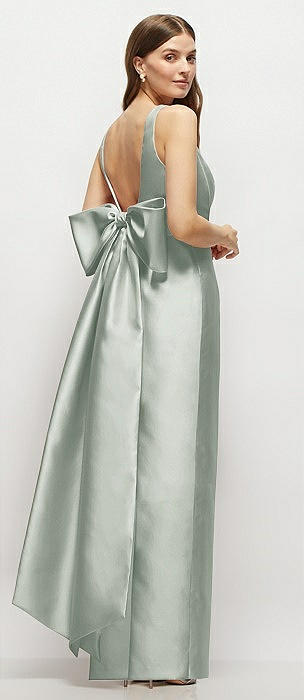 Sleeveless Satin Trumpet Gown with Bow at Open-Back in willow green