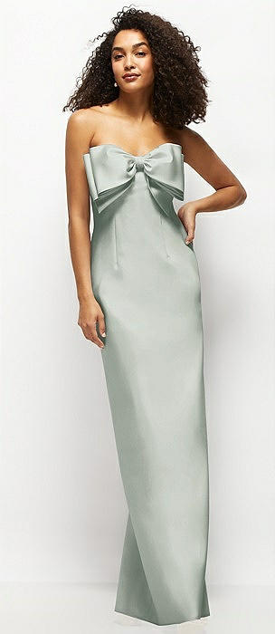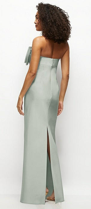 Strapless Satin Column Maxi Dress with Oversized Handcrafted Bow in willow green