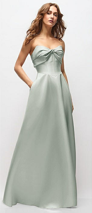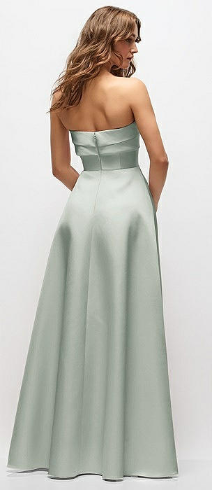 Strapless Bias Cuff Bodice Satin Gown with Pockets in willow green