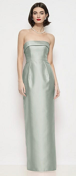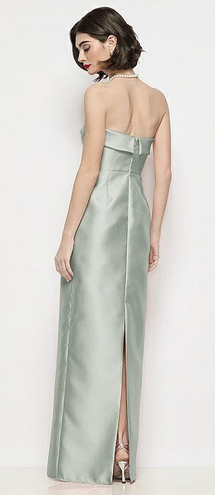 Strapless Cuff Neck Satin Maxi Dress with Column Skirt in willow green