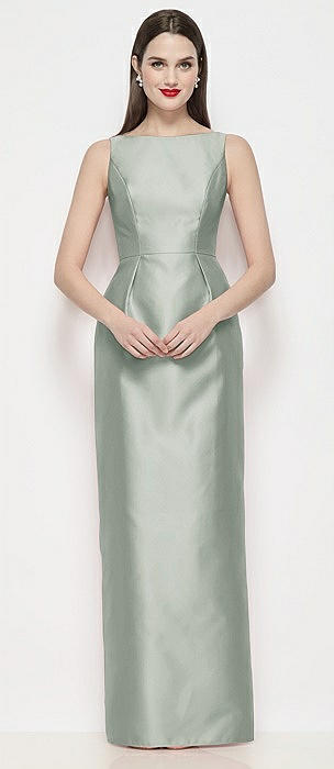 Bateau Neck Satin Maxi Dress with Pleated Column Skirt in willow green