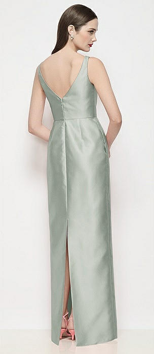 Sleeveless Square-Neck Princess Line Gown with Pockets in willow green