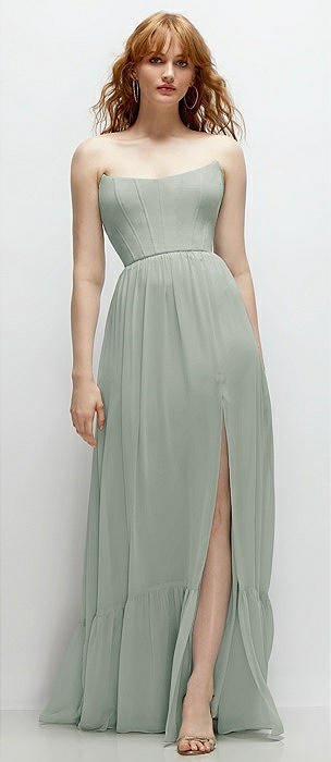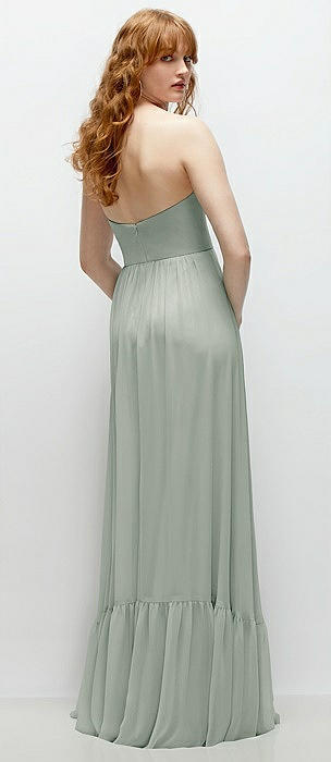 Strapless Cat-Eye Boned Bodice Maxi Dress with Ruffle Hem in willow green