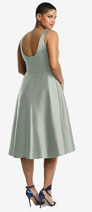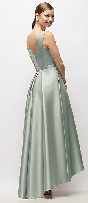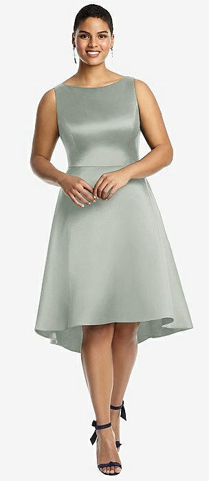 Bateau Neck Satin High Low Cocktail Dress in willow green