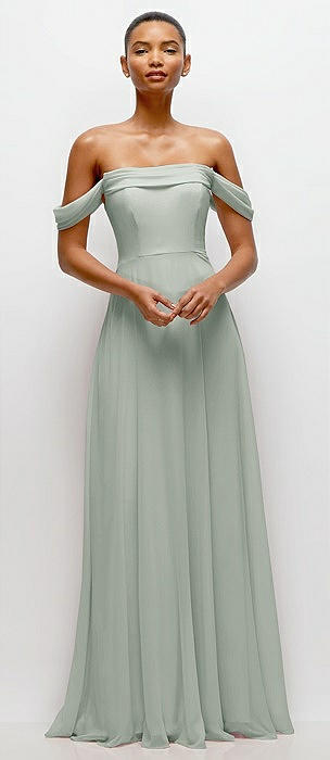 Off-the-Shoulder Draped Chiffon Maxi Dress in willow green