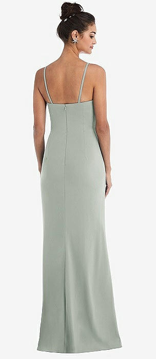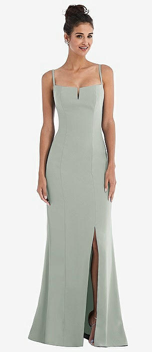 Notch Crepe Trumpet Gown with Front Slit in willow green