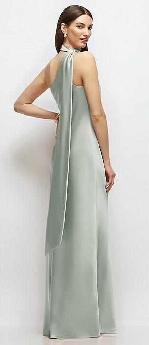 Draped Satin Grecian Column Gown with Convertible Straps in willow green