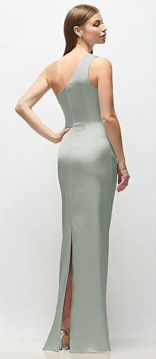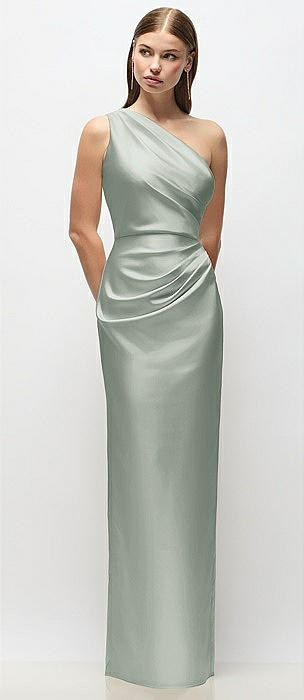 Shirred One-Shoulder Satin Trumpet Dress - Maddie in willow green