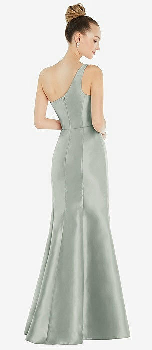 One-Shoulder Draped Skirt Satin Trumpet Gown in willow green