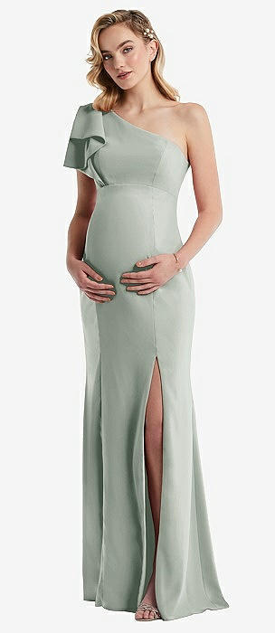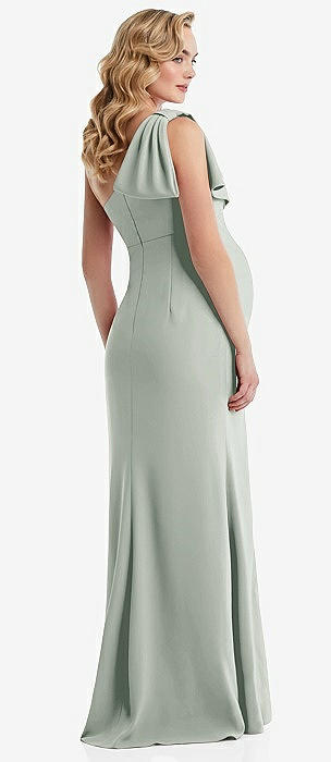 One-Shoulder Ruffle Sleeve Maternity Trumpet Gown in willow green