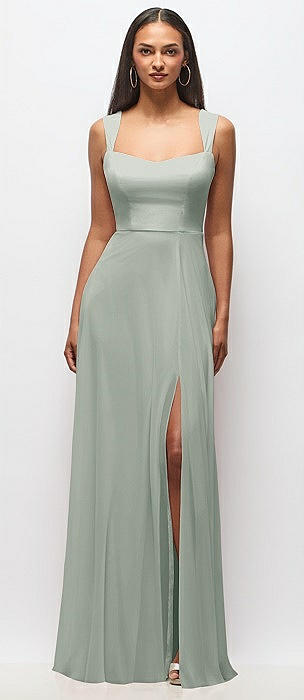 Contoured Wide Strap Sweetheart Maxi Dress in willow green