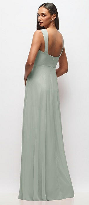 Convertible Ruffle Strap Chiffon Maxi Dress with Full Circle Skirt in willow green