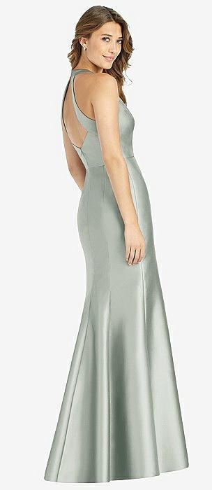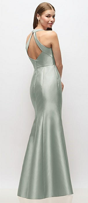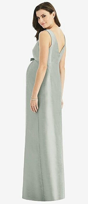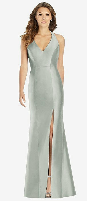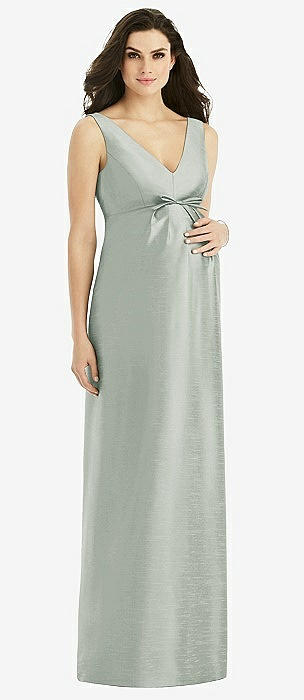 V-Neck Full Skirt Satin Maxi Dress in willow green