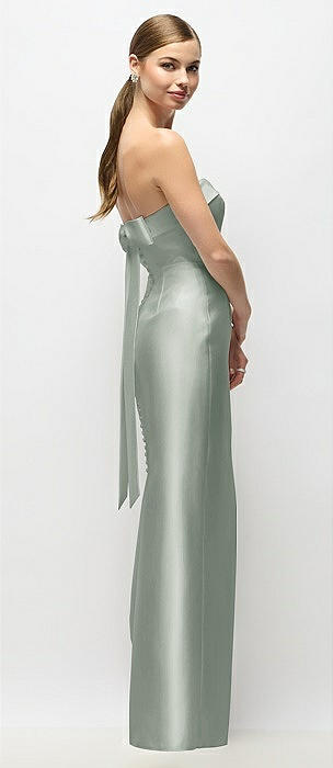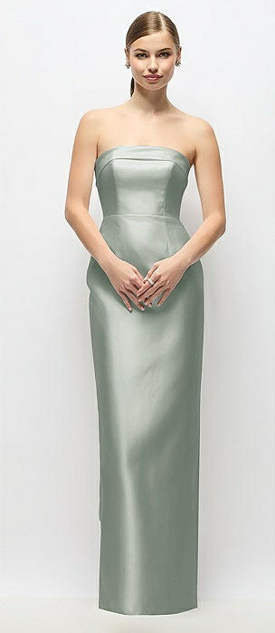 Strapless Cuff Satin Maxi Dress with Column Skirt & Back Bow in willow green