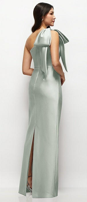 Bow One-Shoulder Satin Trumpet Gown in willow green