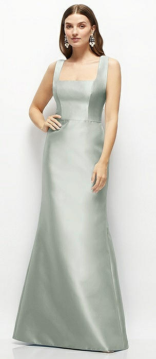 Satin Square Neck Fit and Flare Maxi Dress in willow green