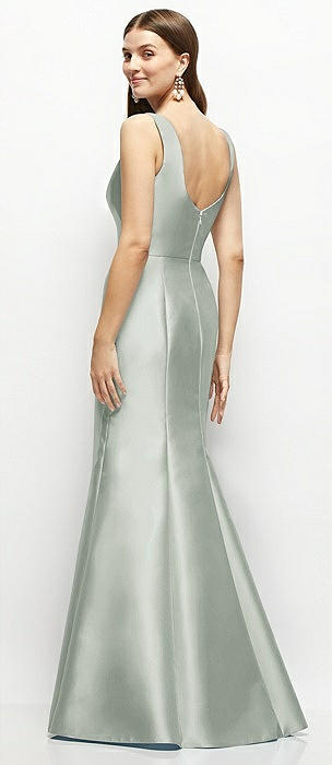 V-Neck Halter Satin Trumpet Gown in willow green