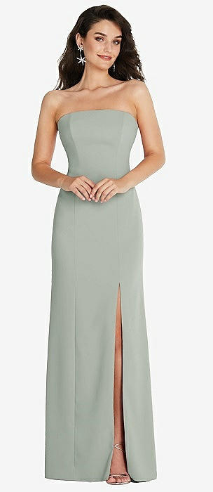 Strapless Scoop Back Maxi Dress with Front Slit in willow green