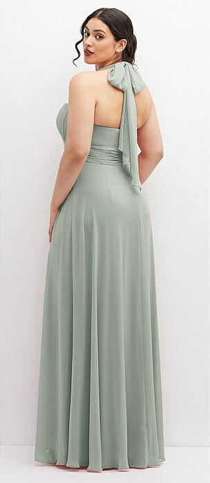 Chiffon Convertible Maxi Dress with Multi-Way Tie Straps in willow green